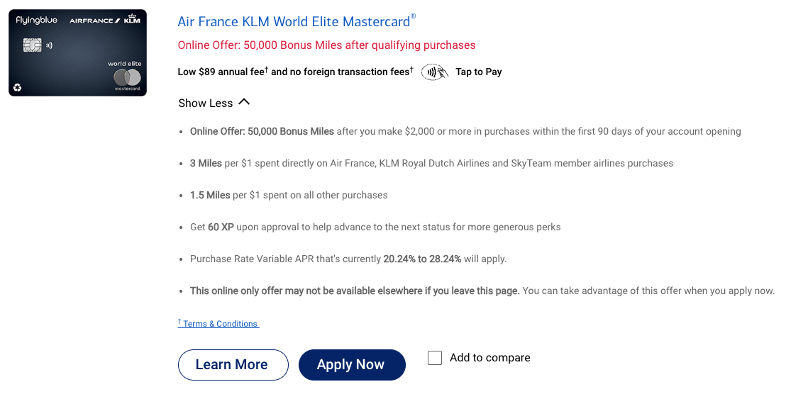 To my surprise I even got a 4000 USD credit line 😱. I selected the Air France KLM Flying Blue World Elite Mastercard: