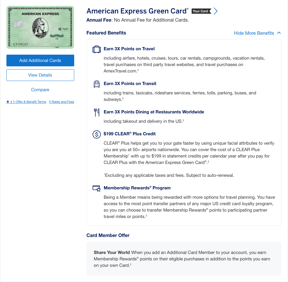 I selected the American Express Green Card, and I suggest you do so as well, since this is a good card to start with. (And if you like my content and want to help me, please use this referral URL so I receive some bonus points).