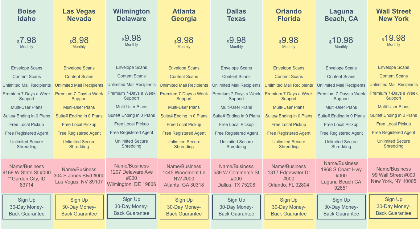 But be aware! Only the Wilmington-location is suitable for you! Their Wilmington-location is a ‘residential’ one. All their other locations are registered as commercial mail receiving agency (CMRA). And financial institution will not accept a commercial address.