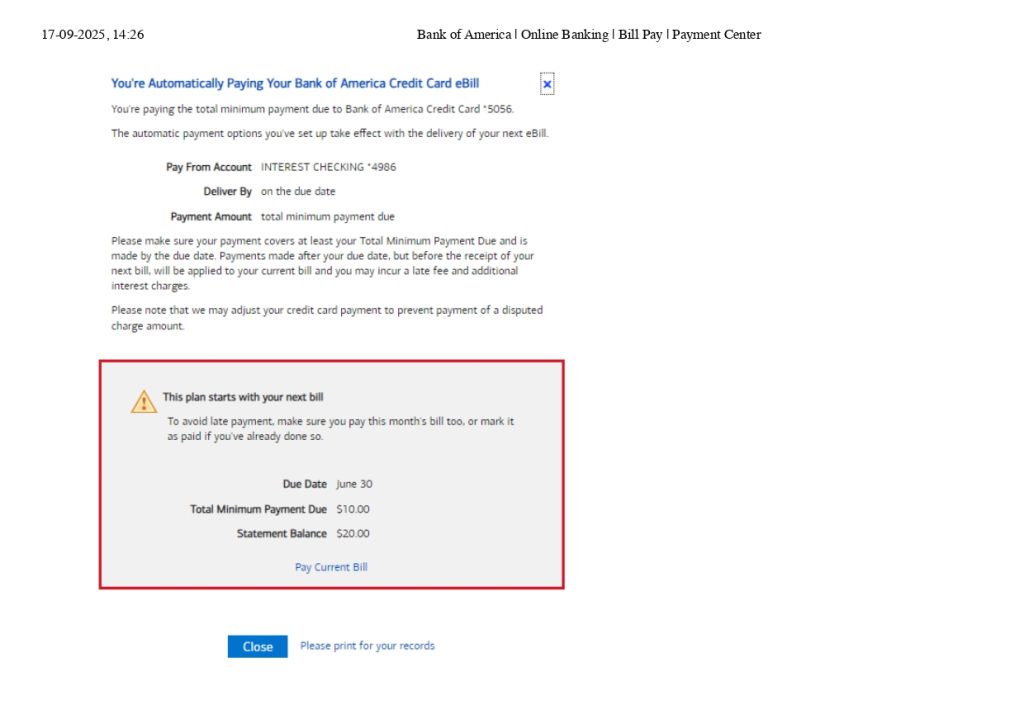 Setting up AutoPay for Bank of America credit cards