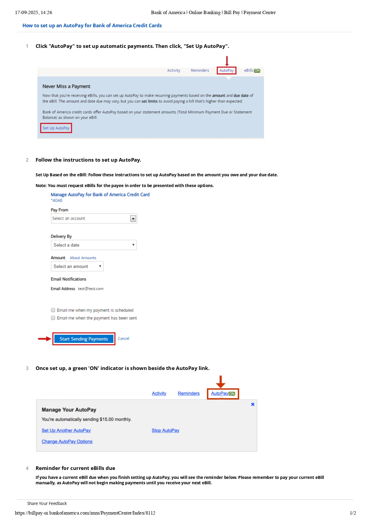 3. Once your Bank of America account has been added to your credit card, you can set up AutoPay according to this guide: